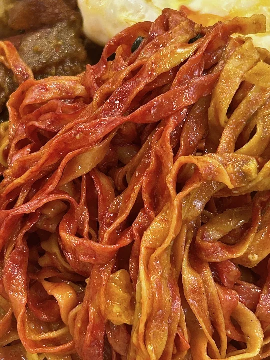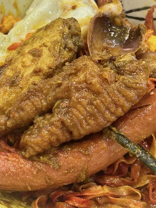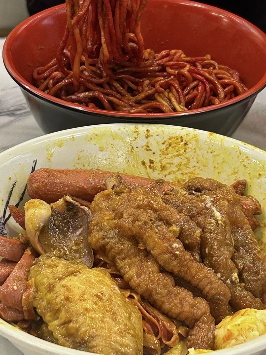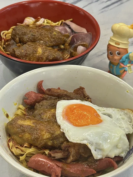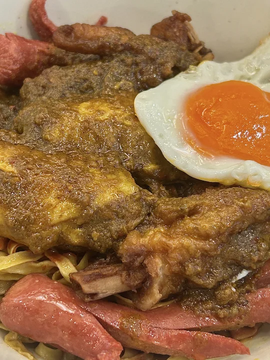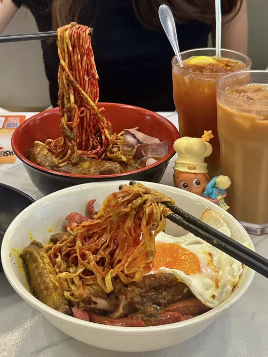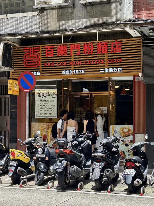 目測是遊客澳門美食攻略必吃之一 但按我這種頻率來的話試過就夠啦 個人覺得還是泰皇咖喱更勝一籌hhh - 🔎 百樂門粉面店 🍜 雞翼香腸波蛋撈粗麵 🍝 馳名咖喱雞翼油麵 🥤 凍奶茶 🍋 凍檸檬茶 -