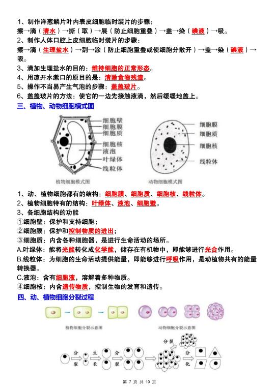 七年级 七年级上册 七年级上册生物 七上生物 初一 初一生物 初中生物 期末考试 家长收藏孩子受益 生物笔记