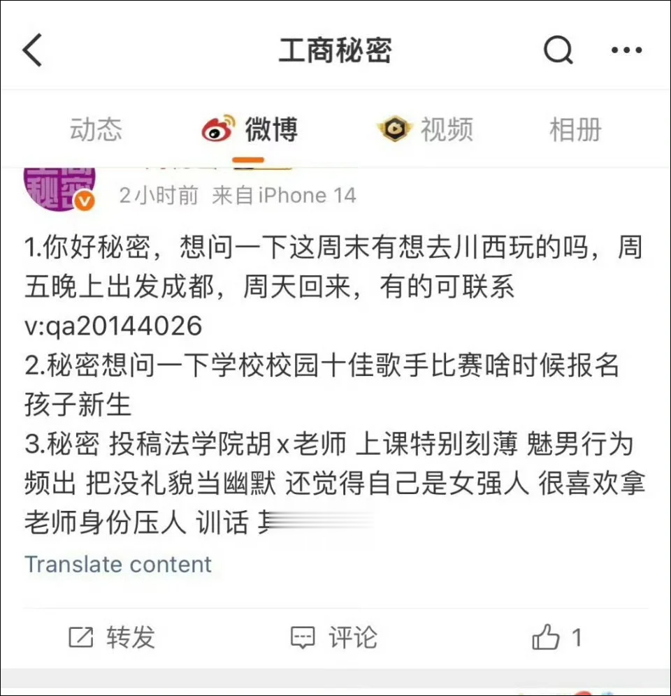10月29日,一名大学生在社交平台吐槽,重庆工商大学法学院一老师上课刻薄、存在魅男行为,还常以老师身份压人。
