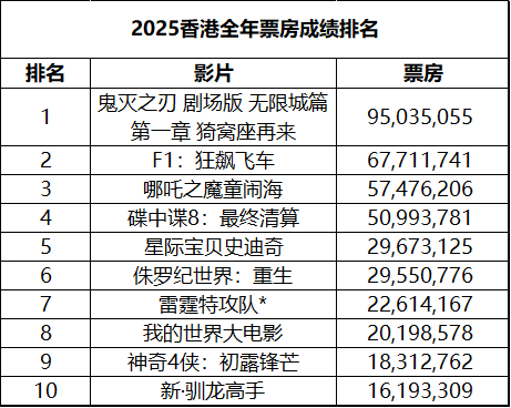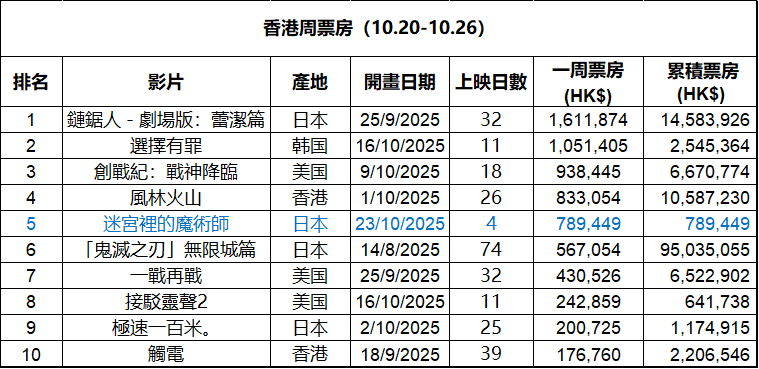 2025年第43周香港票房 :