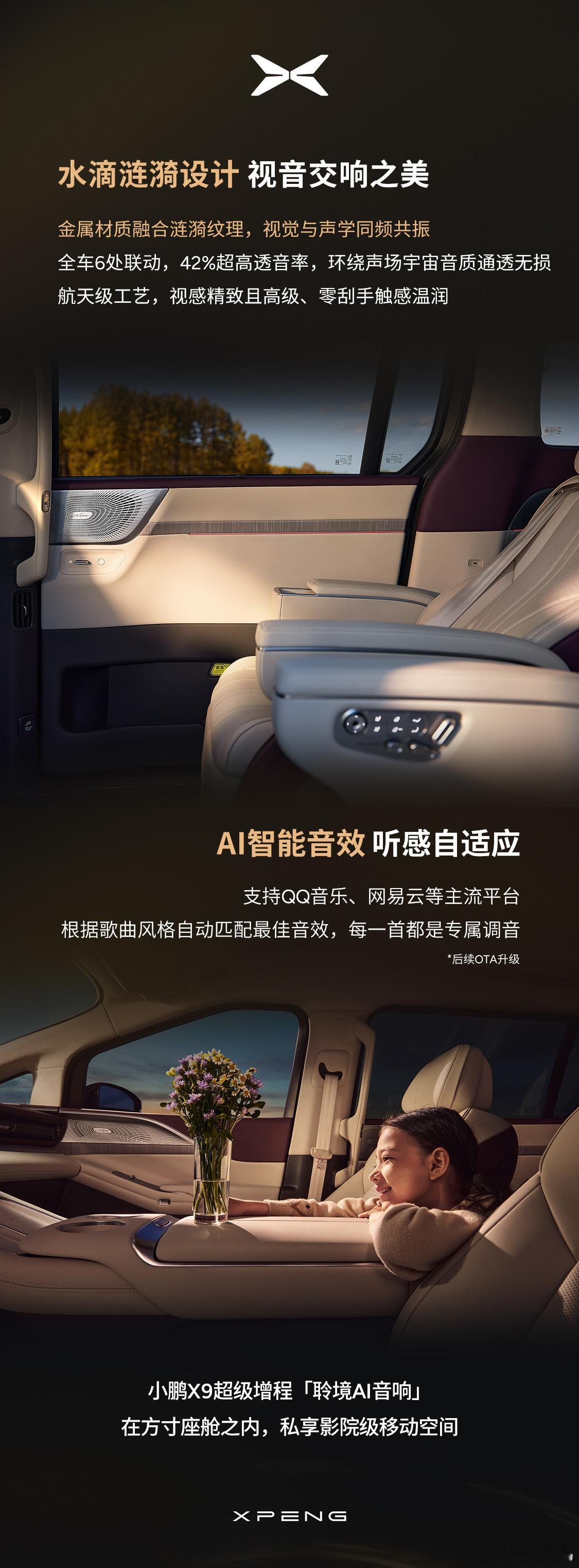 小鹏X9超级增程首发27扬聆境AI音响,实在是太懂享受了!方寸座舱之内,私享影院级移动声场~