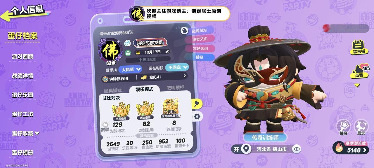 佛缘居士原创视频:Eggy Party 蛋仔派对 蛋仔派對 エギーパーティー 第26赛季国宝归乡季神奇艾比本人彩光极电鸟资质特性展示 制作时间:2025.10.30蛋仔派对 艾比 神奇艾比