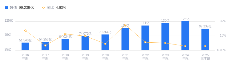 2025年三季度,齐鲁银行营业收入99.24亿元,行业排名11/17,远低于第一名江苏银行的671.83亿元和第二名宁波银行的549.76亿元,也低于行业平均数236.52亿元和中位数117.4亿元。主营业务构成中,公司银行业务40.57亿元占比59.83%,个人银行业务15.47亿元占比22.81%,资金营运业务10.89亿元占比16.05%,其他8916.3万元占比1.31%。当期净利润39.75亿元,行业排名13/17,与第一名江苏银行的318.95亿元和第二名宁波银行的225.78亿元差距较大,低于行业平均数102.12亿元和中位数51.96亿元。