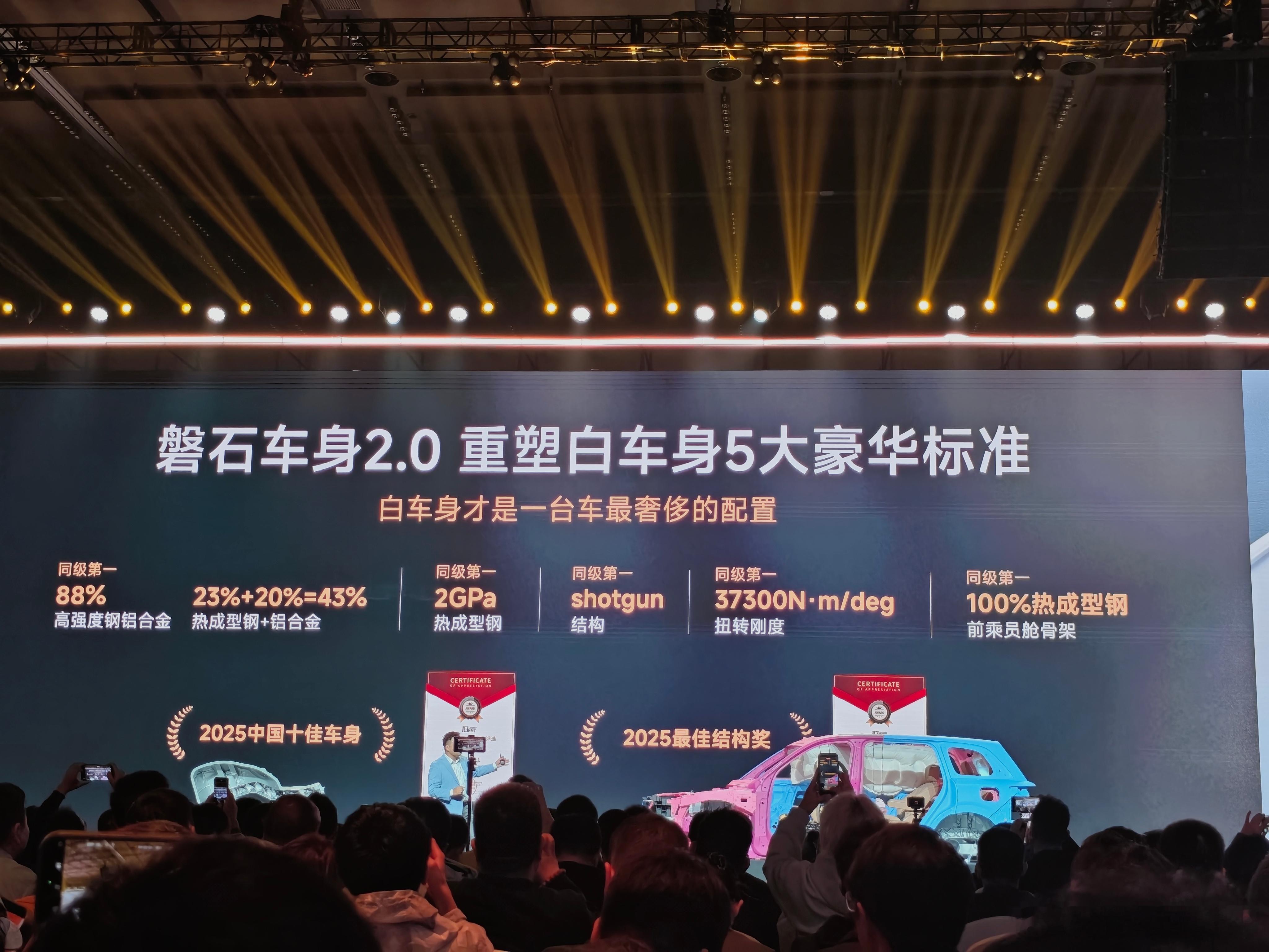 今天还有奇瑞风云T11,10月份预售18天就锁单了28732台,并且今天发布会上直接把车身骨架拿出来给大家看并现场讲解,用料上还是比较良心的,88%高强度钢铝车身,关键部位采用潜艇级2GPa热成型钢,SUV品类唯一标配11安全气囊,5.2米车长 + 3.1米轴距,空间挺大的,34度和40度电两个版本,纯电续航220km,综合续航1400km,感兴趣吗[doge]