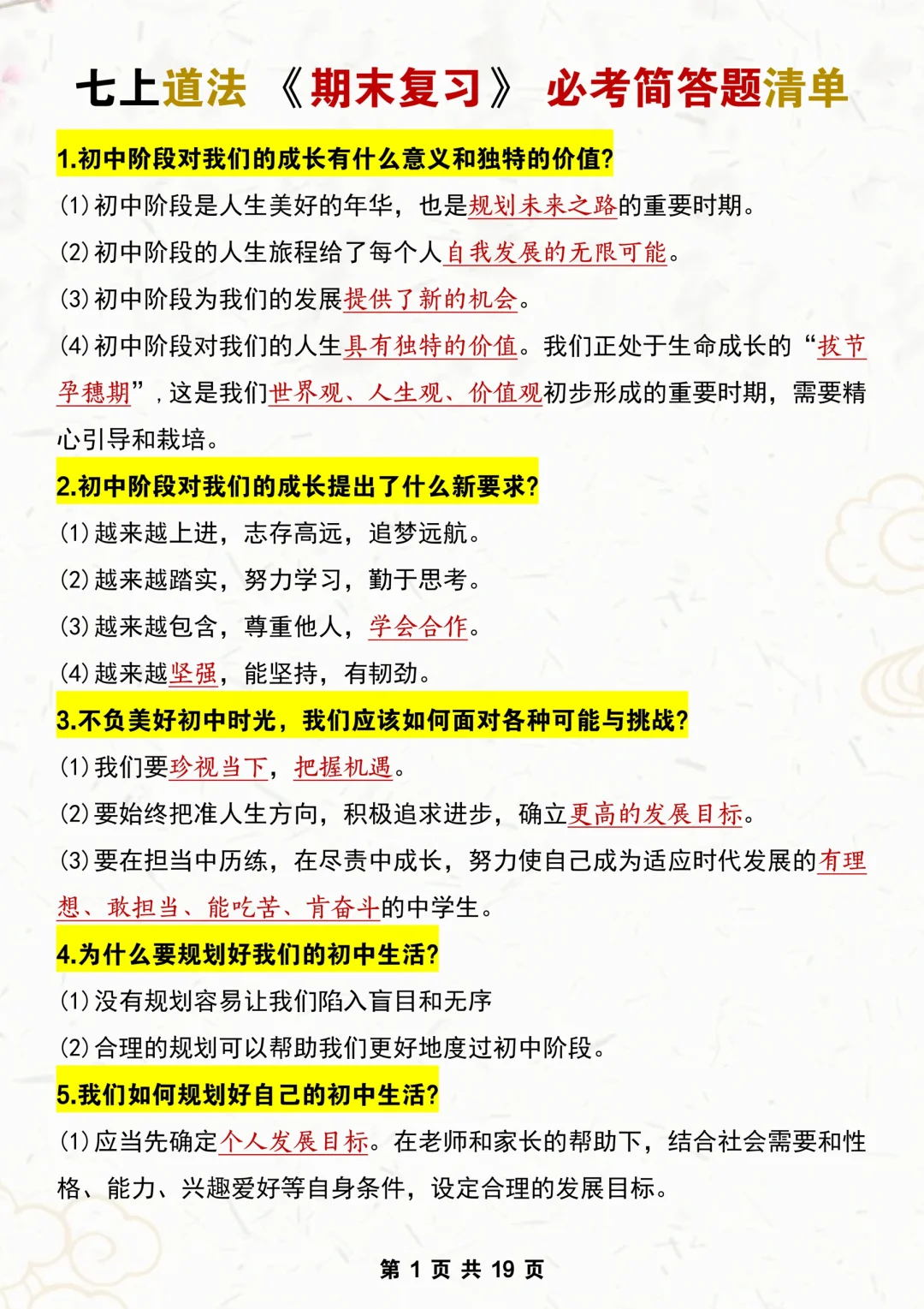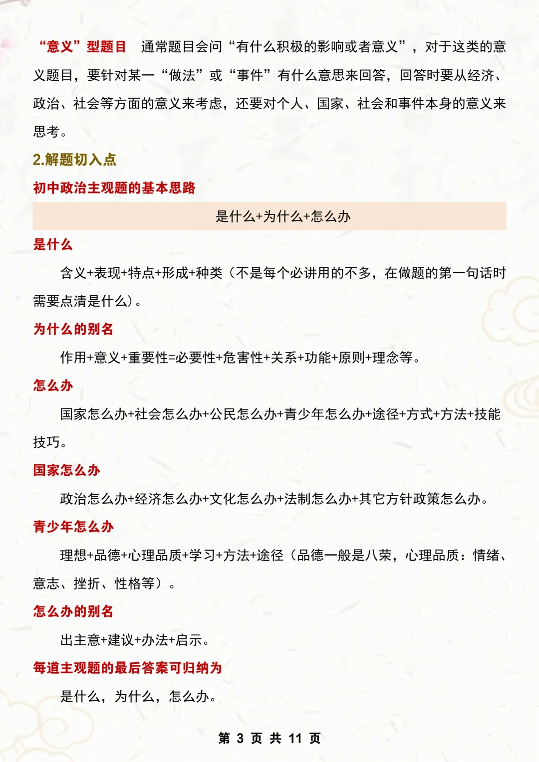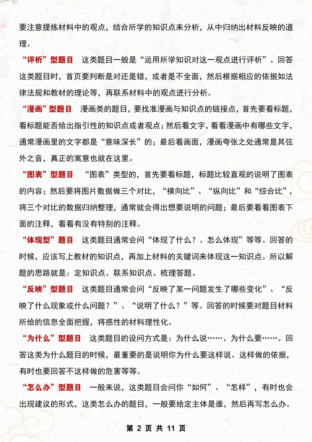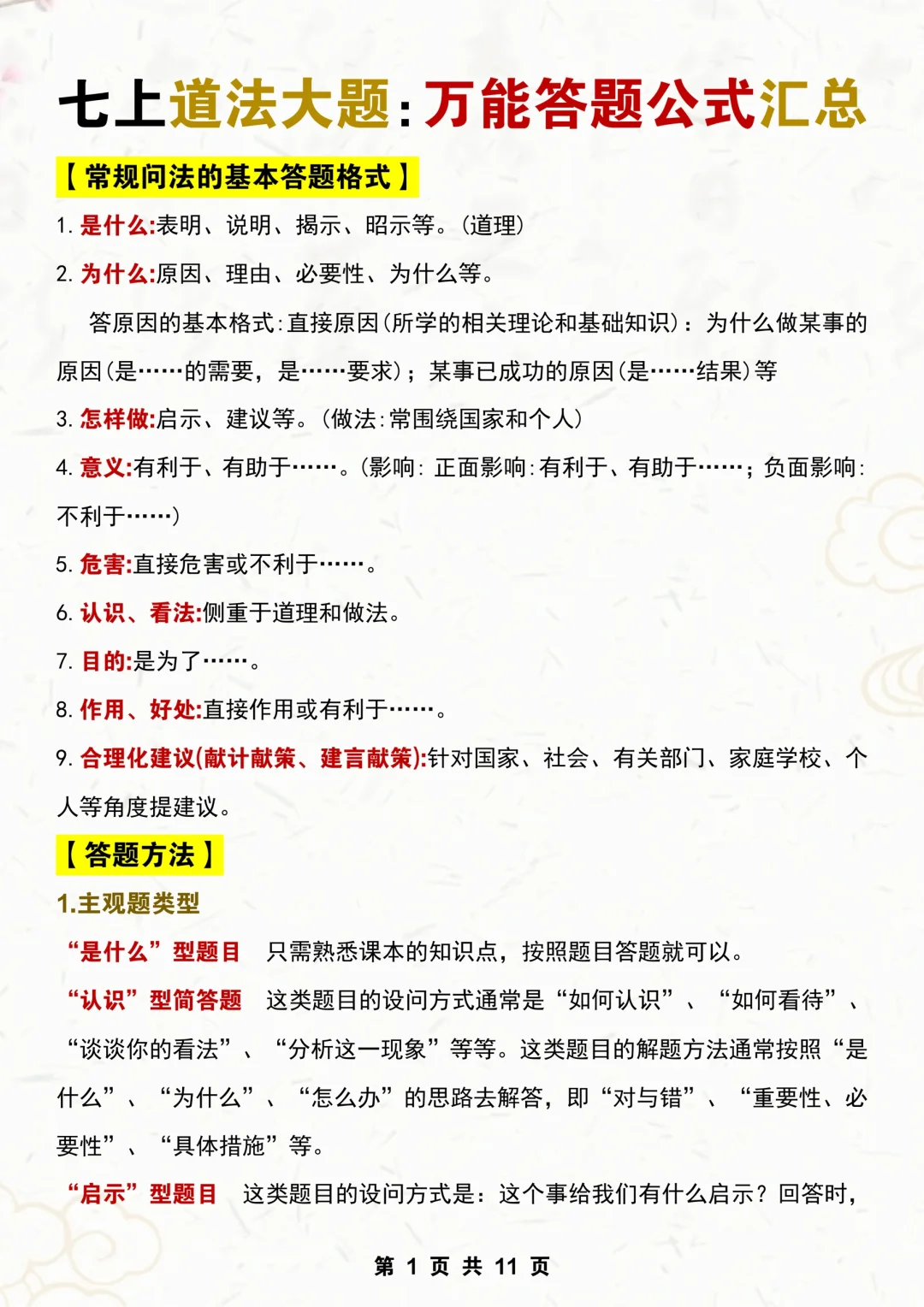 道法想要拿高分,一定要掌握答题技巧 别再摆烂了,学起来吧! 整理了道法常考的万能答题模板,囊括考试踵点,赶紧背起来吧! 再小的努力,乘以365都很明显。把握每一个机会,期末加油!