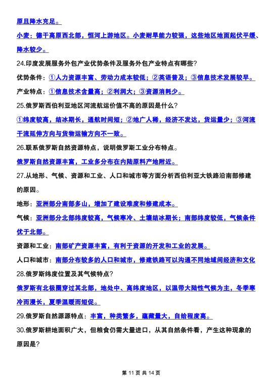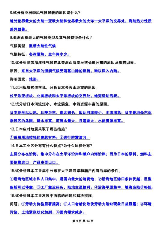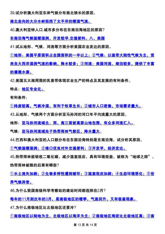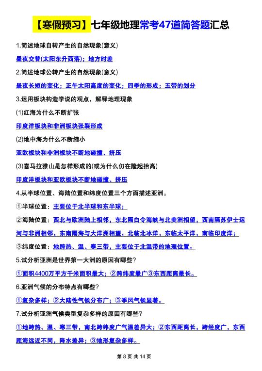 七年级 七年级下册 七年级下册地理 七下地理 初一 初一地理 家长收藏孩子受益 知识点总结 寒假 地理知识