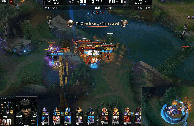 14分钟,Doran塞恩吸收大量伤害,T1团战控制链拉满完成2换4