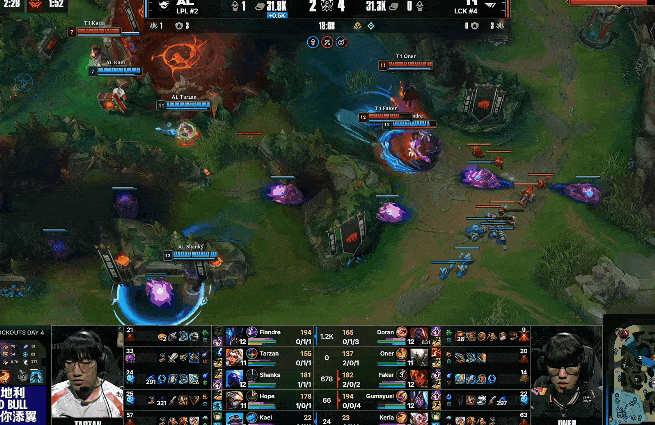 21分钟,AL下路双人组率先被秒,Tarzan关键大招AL及时止损