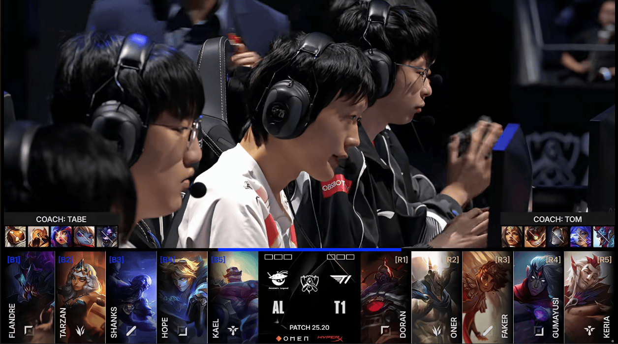 虎扑10月31日讯GAME1:AL蓝色方;T1红色方