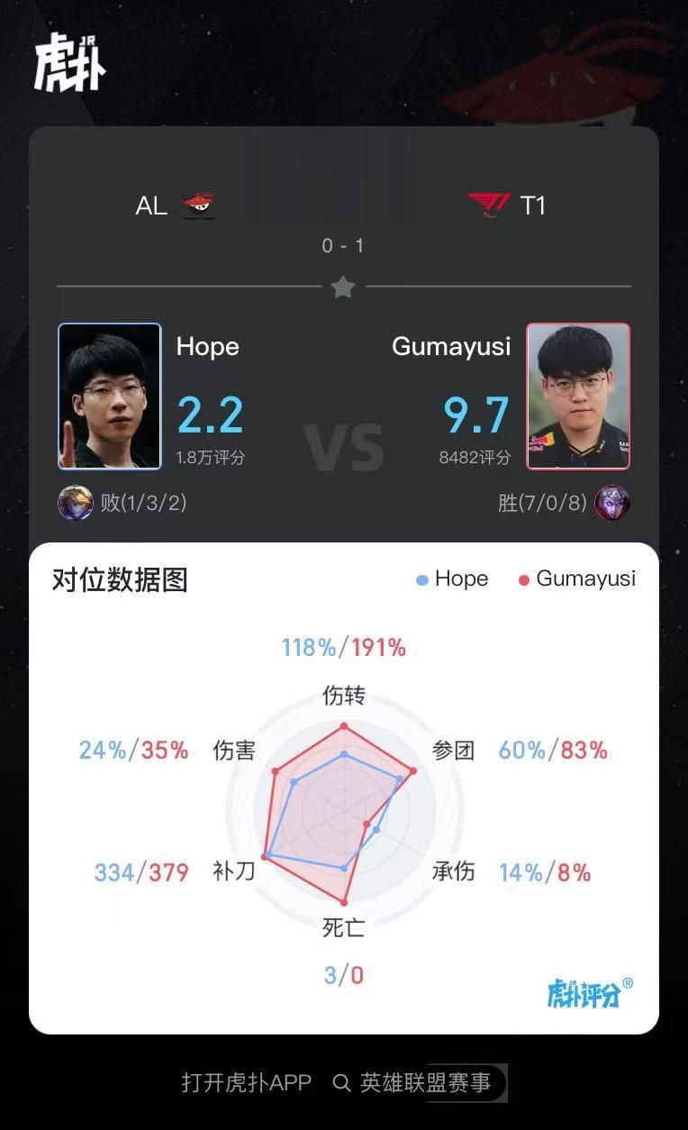 Gumayusi韦鲁斯打出7/0/8战绩,斩获T1对阵AL第一局MVP