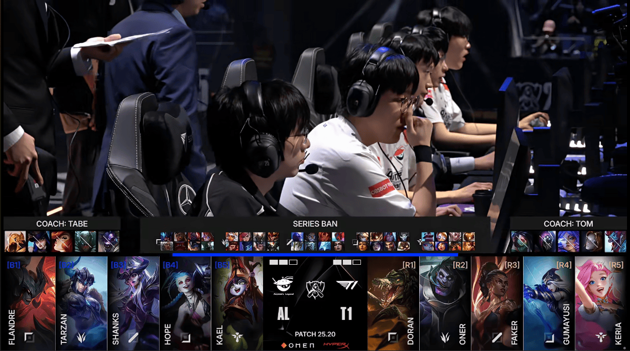 虎扑10月31日讯GAME5:AL蓝色方;T1红色方