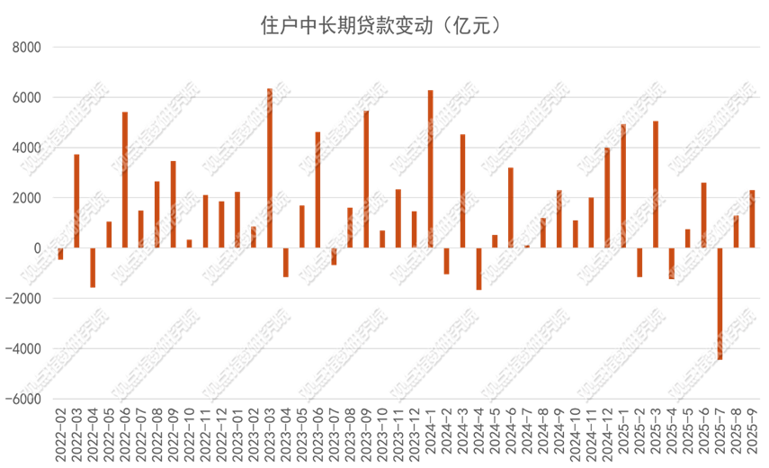 2025年9月住户中长期贷款单月新增2500亿元,环比上月新增2300亿元,同比增加200亿元。可以看到,今年1月、3月、5月、6月、8、9月环比为正增长,2月、4月、7月环比变动为负。随着8月以来,北京、上海、深圳等城市相继出台一揽子房地产调控政策,持续释放利好信号,居民的购房需求有所复苏,住户中长期贷款迎来两连增。