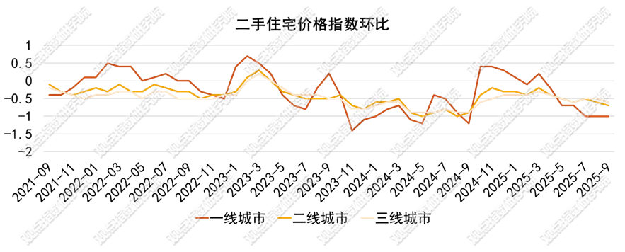 从市场表现来看,一线城市新房价格整体微降,但内部呈现“沪京稳中有涨、广深承压下行”的差异化格局;二手住宅则全面调整,四大城市均现环比下跌。二三线城市新房及二手房价格环比降幅普遍扩大,反映了非核心区域供需矛盾仍较突出。