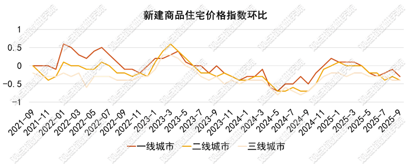 9月份,一线城市新建商品住宅销售价格环比下降0.3%,降幅比上月扩大0.2个百分点。其中,北京和上海分别上涨0.2%和0.3%,广州和深圳分别下降0.6%和1.0%。同比下降0.7%,降幅比上月收窄0.2个百分点。
