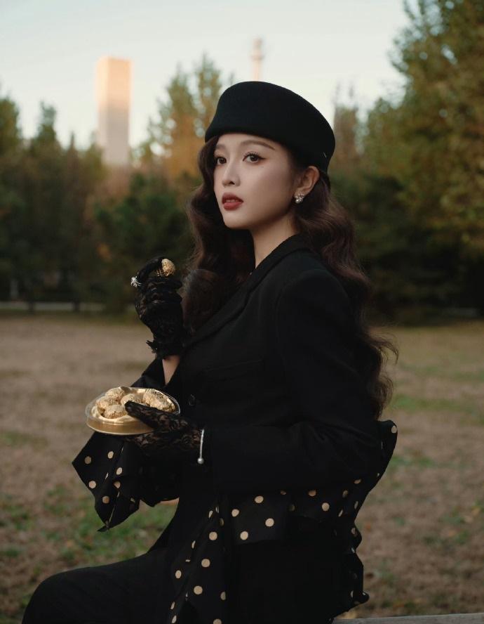 最近吴宣仪在出席活动的时候搭配的很漂亮,气质也不错,显得好迷人。 吴宣仪上身穿黑色收腰装,下身搭配黑色裙子,让她秀出了纤细的腰部线条。 吴宣仪搭配的衣服上有很美的波点风设计,增添了浪漫风情。 她头戴黑色圆帽,脚踩黑色高跟鞋,看上去有种楚楚动人的感觉,确实是很有吸引力。 吴宣仪还留着超美的大波浪卷长发,染着红色的嘴唇,像个漂亮的富家千金。
