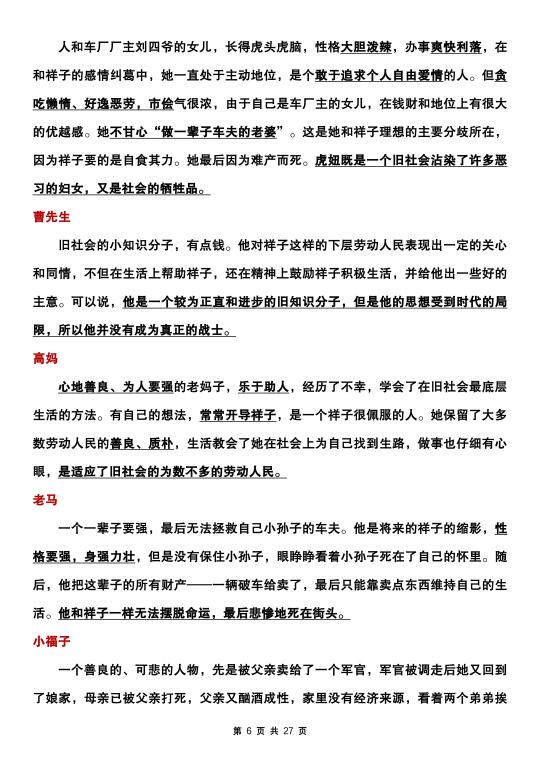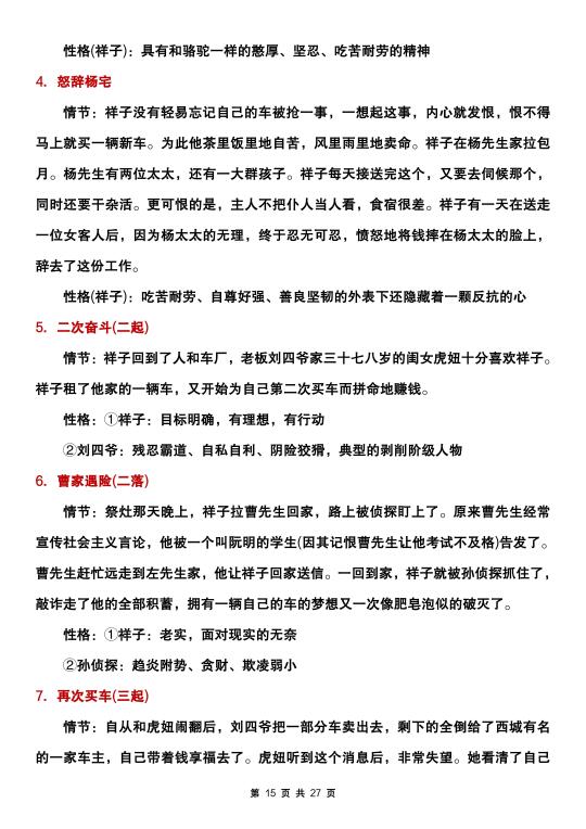 七下语文《骆驼祥子》寒假吃透这几页就够了!