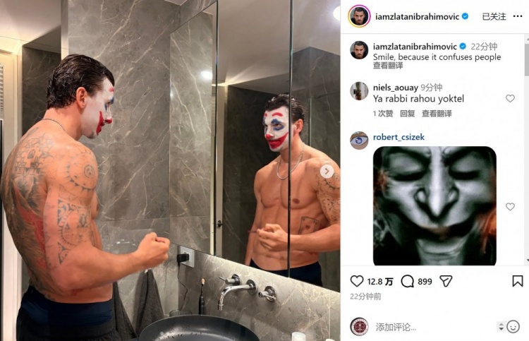 神似!伊布社媒晒装扮成小丑照片:笑吧,这会令世人困惑