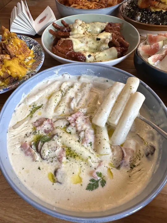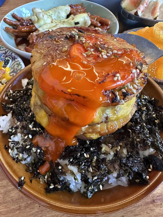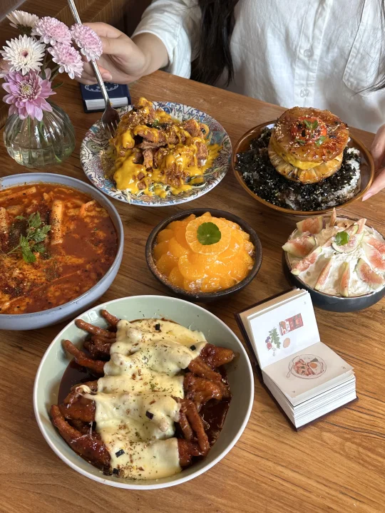 逛完南京玄武湖,记得来吃🥹🥹 很韩系的小店,拍照很出片📷 · 随便点的几道菜都不错 芝士辣鸡爪,桔子布蕾🍊焦糖凤梨牛肉饭