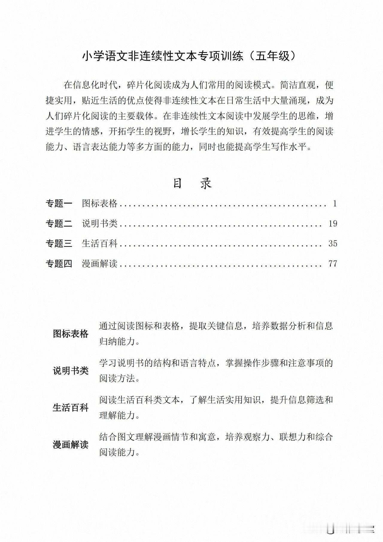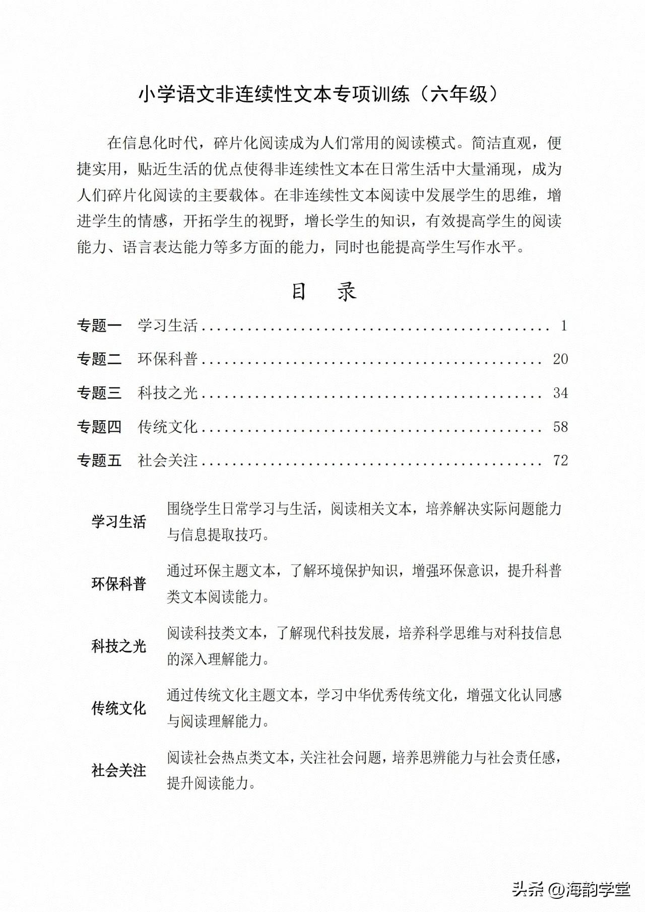 小学语文非连续性文本专项训练(5~6年级) 更多内容: