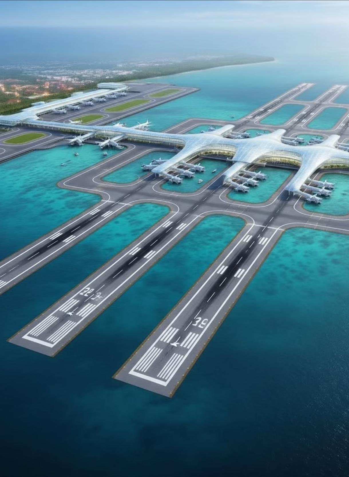 在海上建机场!中国为啥要这么干?大连金州湾,目前正在修建全球最大的海上机场! (信源:中国新闻周刊网:在《世界最大海上机场要来了!) 先看为啥非要选海上?陆地真的“挤不下”了。大连老机场周水子机场,被城区裹得严严实实。 周边3公里内全是居民区、写字楼,想把现有跑道从3300米,延长哪怕100米,都要拆掉大量建筑,根本不现实。 可大连年航空旅客量早突破2000万人次,周水子机场的设计容量早不够用。 再找新陆地?大连70%是山地,平坦地块要么在离市区100公里外的郊区(开车得2小时),要么涉及基本农田或生态保护区。 而金州湾海域能直接“造”出20平方公里人工岛(相当于30个故宫大小),既不占耕地,又距市中心仅23公里,一下解开“空间不够、距离太远”的双重困局。 再看海上机场的配置,这座机场按最高4F标准建,能起降A380、波音747等超大型客机。 修了3600米和3400米两条平行跑道,间距足够宽,能同时起降飞机,每天最多可处理800架次航班(相当于每分钟1.3架)。 未来年旅客吞吐量能达4300万人次(相当于大连全市人口的8倍)、货邮55万吨,比现在周水子机场的 capacity 翻3倍。 这些数据放在陆地上,得占更大面积,还容易和城市交通挤在一起,而海上空旷的环境,正好能撑起这么大的“航空流量”。 更关键的是海上选址,能解决陆地机场的“老大难”。比如噪音问题——陆地机场周边居民,常被飞机起降噪音困扰。 而海上没有居民区,飞机起飞降落时120分贝的噪音(相当于电锯工作的声音)不会影响任何人。 还有空域限制,陆地机场附近有高楼、高压塔,飞机起降得绕着飞,而海上全是开阔水域,飞机能走“直线航线”,不仅能减少30%的飞行时间,还降低了低空碰撞风险。 最后看长远价值,数据背后是东北亚枢纽的远望。 从这座机场起飞,3小时能到日韩主要城市(到首尔仅2小时),5小时直达莫斯科,正好补上东北地区缺少大型国际航空枢纽的短板。 配套的3条跨海快速通道、地铁1/5/9号线,能实现20分钟从市区到机场,还联动大连北站(高铁)、大连湾港(海运),形成“海陆空铁”立体网。 所以,建海上机场不是“炫技”,而是把“陆地没空间”的劣势,变成“高效、安全、带动发展”的优势,这才是中国基建“因时制宜”的智慧!