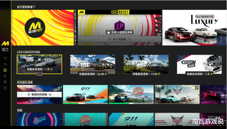 玩家也可以通过选项键打开“游玩列表”,查看当前不同游戏列表、挑战的进度,另外也有 Live Competition 在线赛事,这部分 JB 没时间体验... 但就 Demolition Royale 这个名字来推断应该是有类似大逃杀的玩法?本次《飙酷车神:动力庆典》封测仅开放 Made in Japan、Hawaii Scenic Tour 和 A Porsche Story 等 3 个游玩清单,每个游玩列表又分为赛事、支线活动和挑战 3 种项目,解锁即可获得经验值和游戏币。