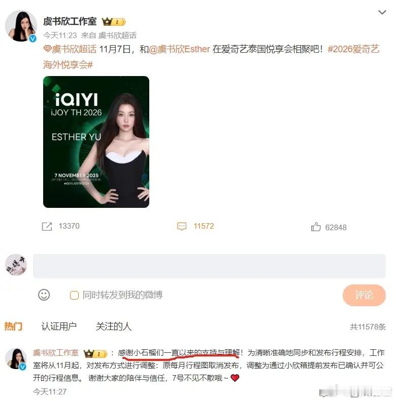 虞书欣邢菲宣布取消行程图!继赵丽颖之后,女演员虞书欣和邢菲工作室宣布取消艺人每月