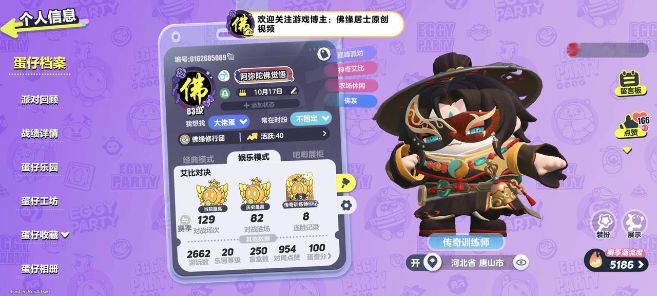 佛缘居士原创视频:Eggy Party 蛋仔派对 蛋仔派對 エギーパーティー 第26赛季国宝归乡季恭喜我艾比大师赛成功晋级 制作时间:2025.11.02蛋仔派对 艾比 神奇艾比