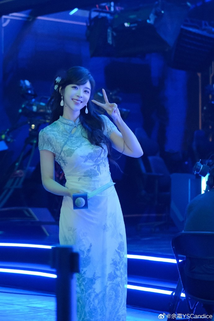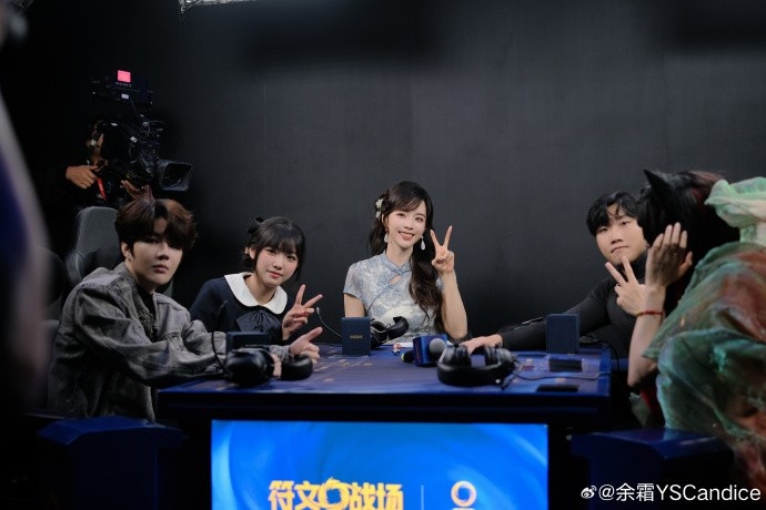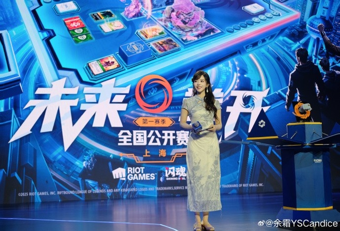 主持人余霜晒照:在后台看完今天的精彩比赛 也想给咱们LPL集个气