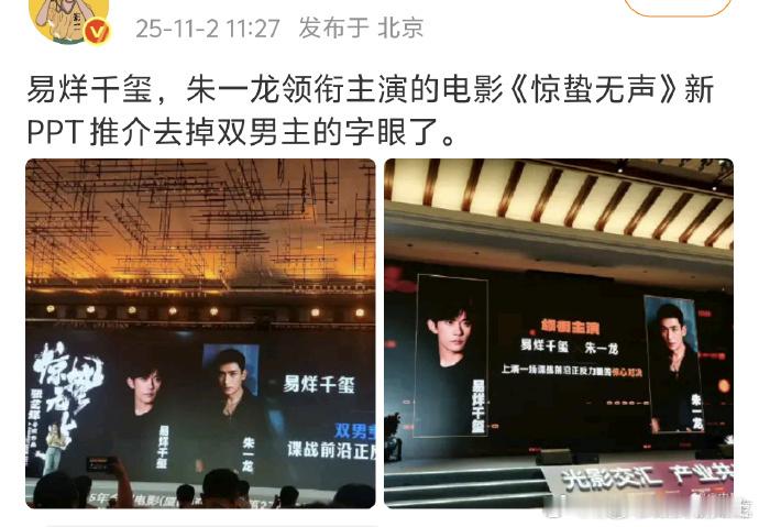 《惊蛰无声》推介会更新信息,“双男主” 被删,仅保留 “易烊千玺、朱一龙领衔主演”