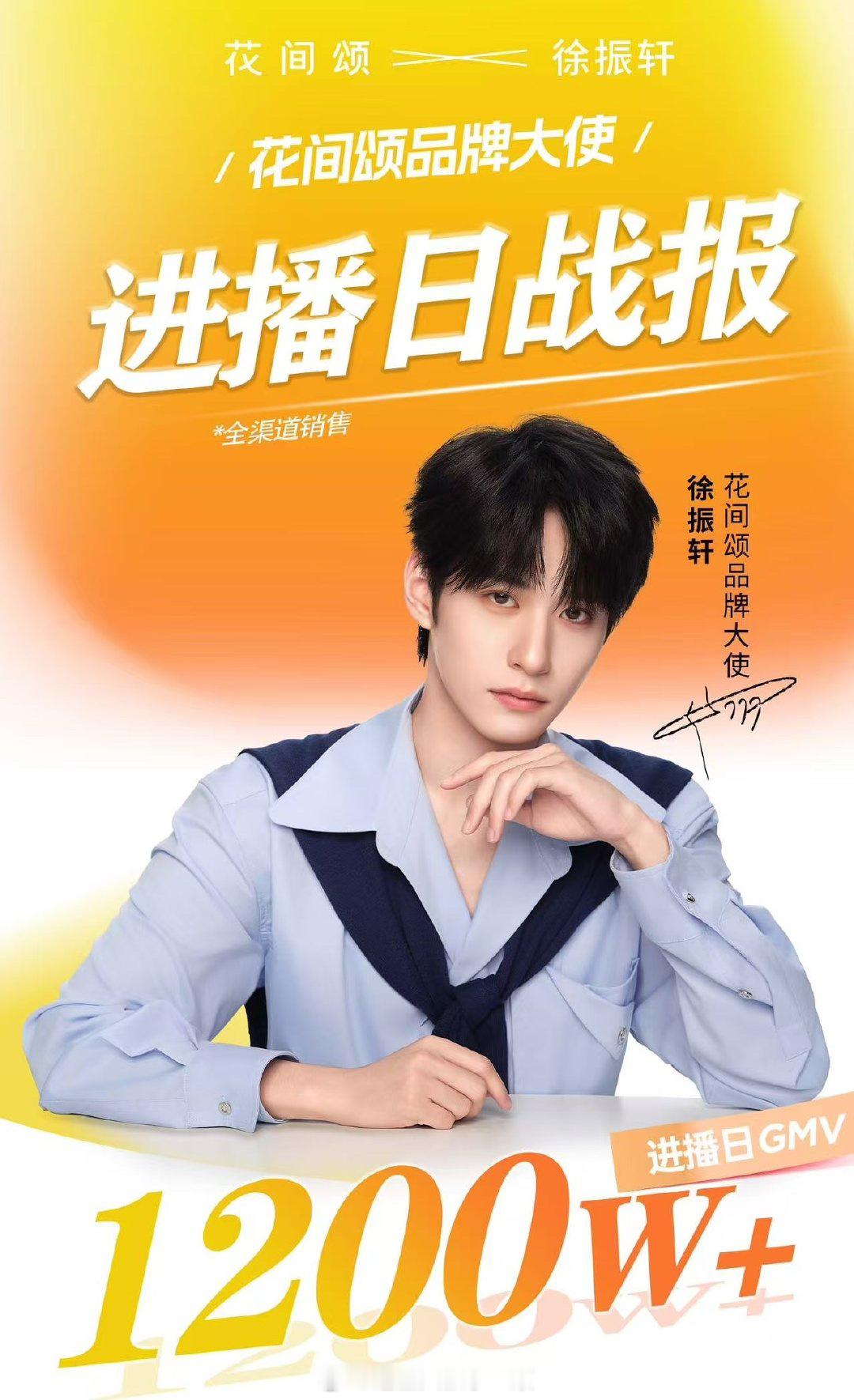 徐振轩新代言官方战报,什么水平?个人套组售出1.5w套,GMV1200w➕
