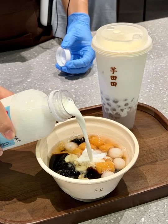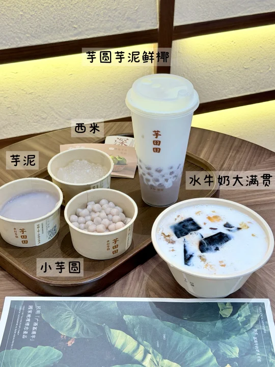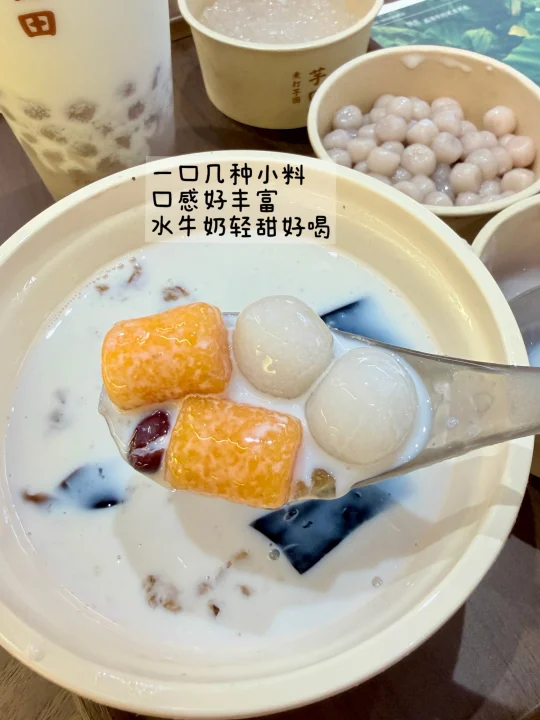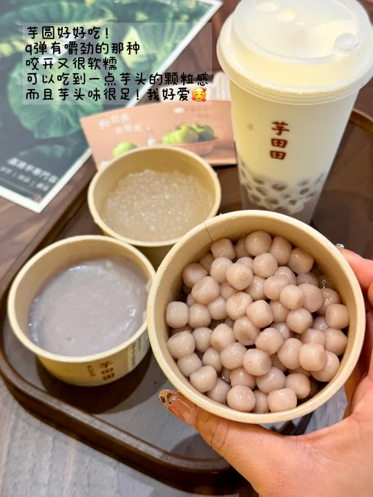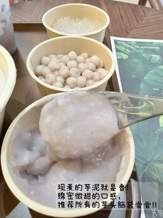 啊啊啊……我大福田终于也有了!! 芋泥脑袋可以冲了! 现场熬制的芋泥,能吃到芋头的颗粒感! 听说他们家全部用的荔浦芋头,是真的🐮 热喝冷喝都好喝!! 喜欢吃小料的姐妹也有福了! 他们家真的给好足哈哈哈 小料分量好扎实,而且芋圆素真的好吃!! 来山姆扫货的香港朋友怎么都得来尝尝~