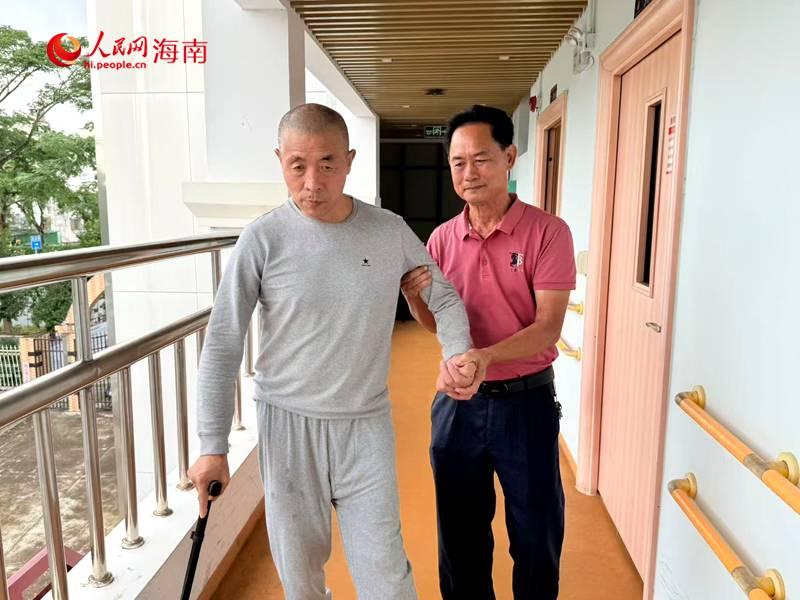 对于失能患者,高伟则化身“康复师”。院里曾有一位年仅30多岁的患者陈业东瘫痪在床,情绪低落。高伟和妻子鼓励他:“你这么年轻,这辈子不能就这么躺着。”没有专业的康复器材,他们就用手搀扶,甚至用木棍当辅助,一点一点教他重新走路。如今,陈业东已能自己走到饭堂吃饭。