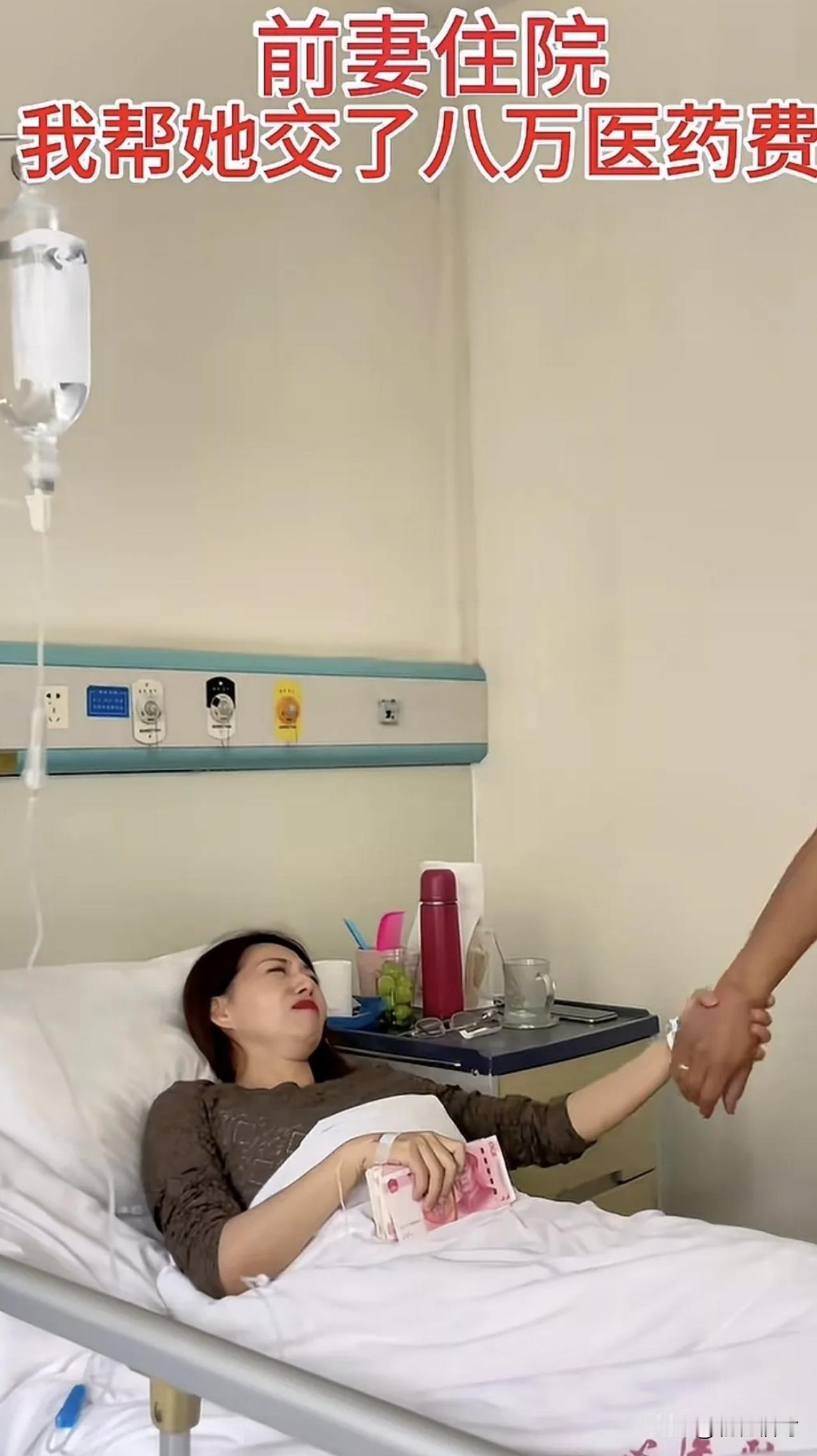 离婚后前妻住院,他二话不说掏8万!获全网点赞 前妻住院急需用钱,大哥直接拿出8万交了住院费!都说“一夜夫妻百日恩,百日夫妻似海深”,这话在他身上算是体现出来了。 很多人觉得离婚就是仇人,可这大哥用行动证明,夫妻缘尽,情分未必断。尤其是有共同子女的,这辈子其实都断不了联系,从爱人变成亲人,这份牵挂一直都在。 现实里不少情况也这样,男人外表看着大老粗,心其实很软,面对曾经爱过的人落难,大多人不会袖手旁观。 我觉得,这才是真男人该有的样子!离婚只是解除了婚姻关系,不是丢掉了良心和责任。能在对方最难的时候伸把手,也算是给夫妻一场交代,就算走不到最后,也别把关系闹僵。多一份包容,少一份计较,说不定哪天谁就需要谁的帮助,你说对吧?为这样的好男人点个大大的赞!