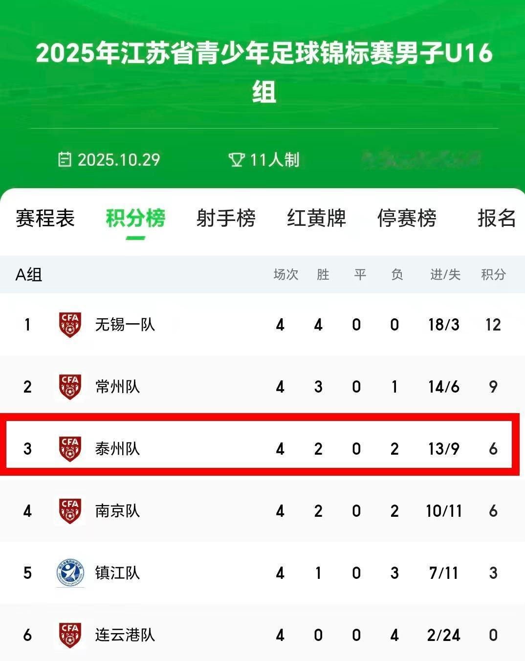小组首战泰州队1比6惨败无锡一队,次轮则是6球大胜连云港,第三轮5球大胜镇江,四轮1比3负于常州,目前暂列小组第三,朱家旭则以5球并列领跑射手榜!可以说泰州U16算是给泰州糟糕的青训基础挽回了一丝颜面。