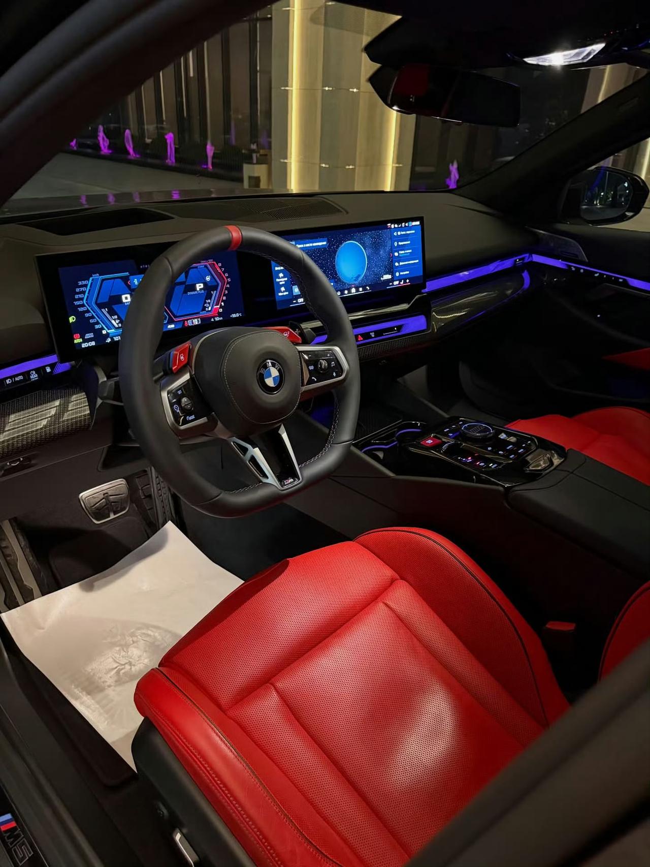 宝马 M5 G90 简直是动力猛兽!它搭载 4.4 升 V8 双涡轮增压 + 插电式混合动力系统,综合输出达 727 马力,约 1000 牛·米,配合 8 速自动变速箱和 M xDrive 四轮驱动,0 - 100km/h 加速约 3.5 秒。可选配 M Driver’s Package 后,极速能提升至 305km/h。 电动系统也不逊色,电机约 197 马力,电池可用容量约 18.6kWh,WLTP 工况纯电续航 67 - 69km。车身长度 5060mm,轴距 3000mm,整备质量约 2435kg。底盘有 M 自适应电子悬挂,刹车前六活塞卡钳还能选装 M 碳陶。另外,它还有发动机启动按钮动画等特色设计,太酷了!