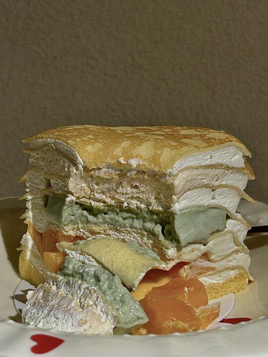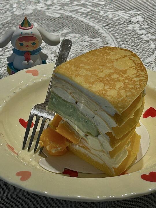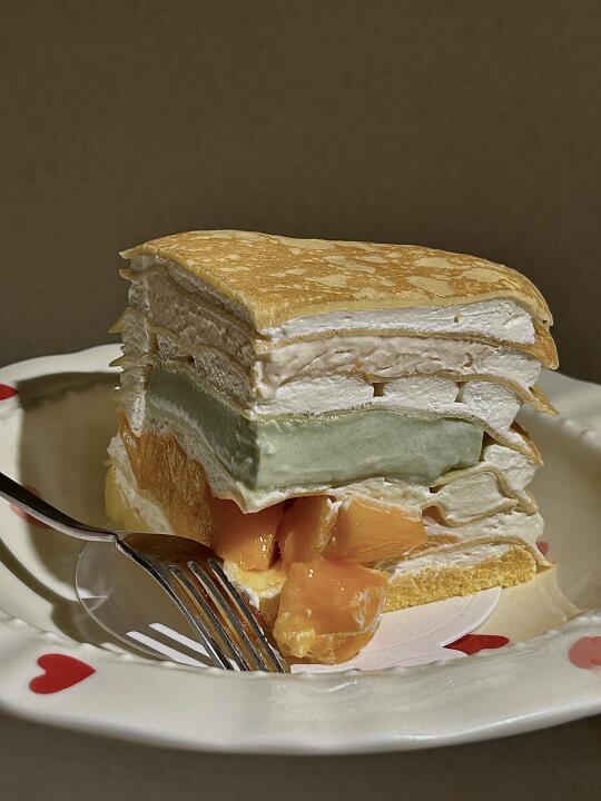 是不一樣的敲足料千層呀 一叉挖下去也太滿足了叭 - 🔎 LeT'S·來財千層·甜品 🍰 椰奶凍|開心果奶凍|芒果 -
