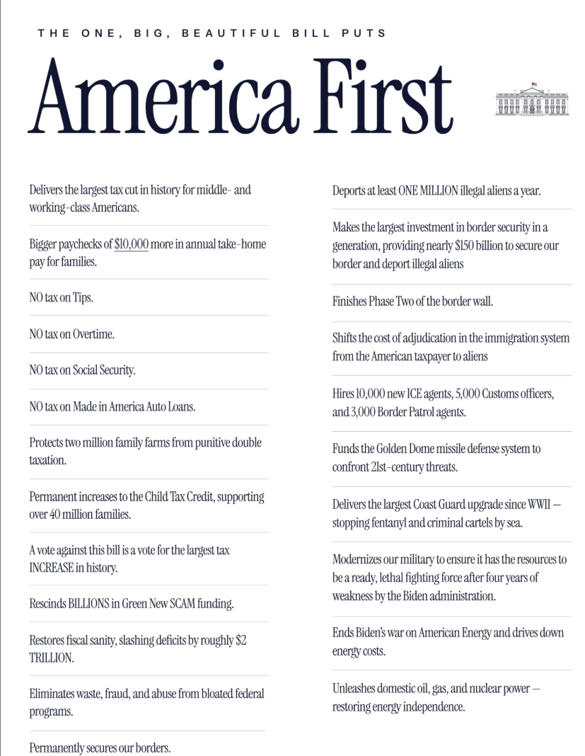 特朗普,这位重返白宫的“地产之王”,踌躇满志地推出了他第二任期内最重要的法案——“大而美(Big and Beautiful)”法案。其核心内容,是大幅增加基础设施建设和特定产业的政府支出,同时对部分传统行业减税。用特朗普的话说,这是要让“美国的每一个角落都变得宏伟而美丽”。