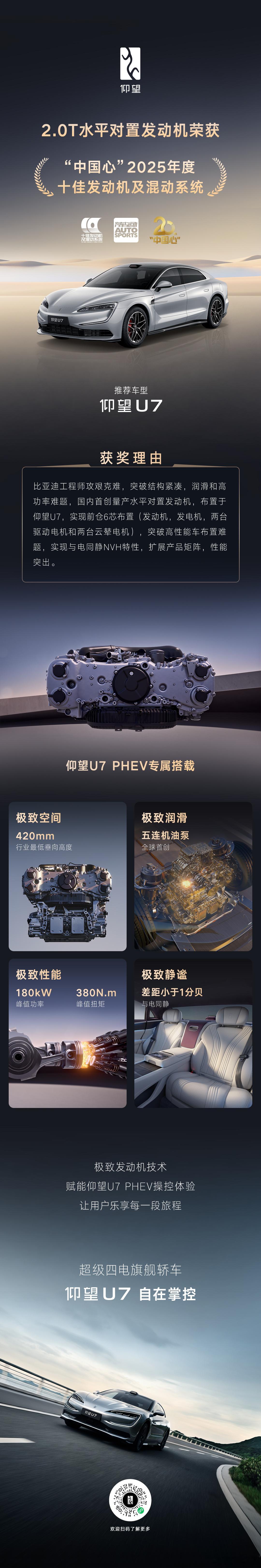 [666]仰望2.0T水平对置发动机荣获“中国心”2025年度十佳发动机及混动系