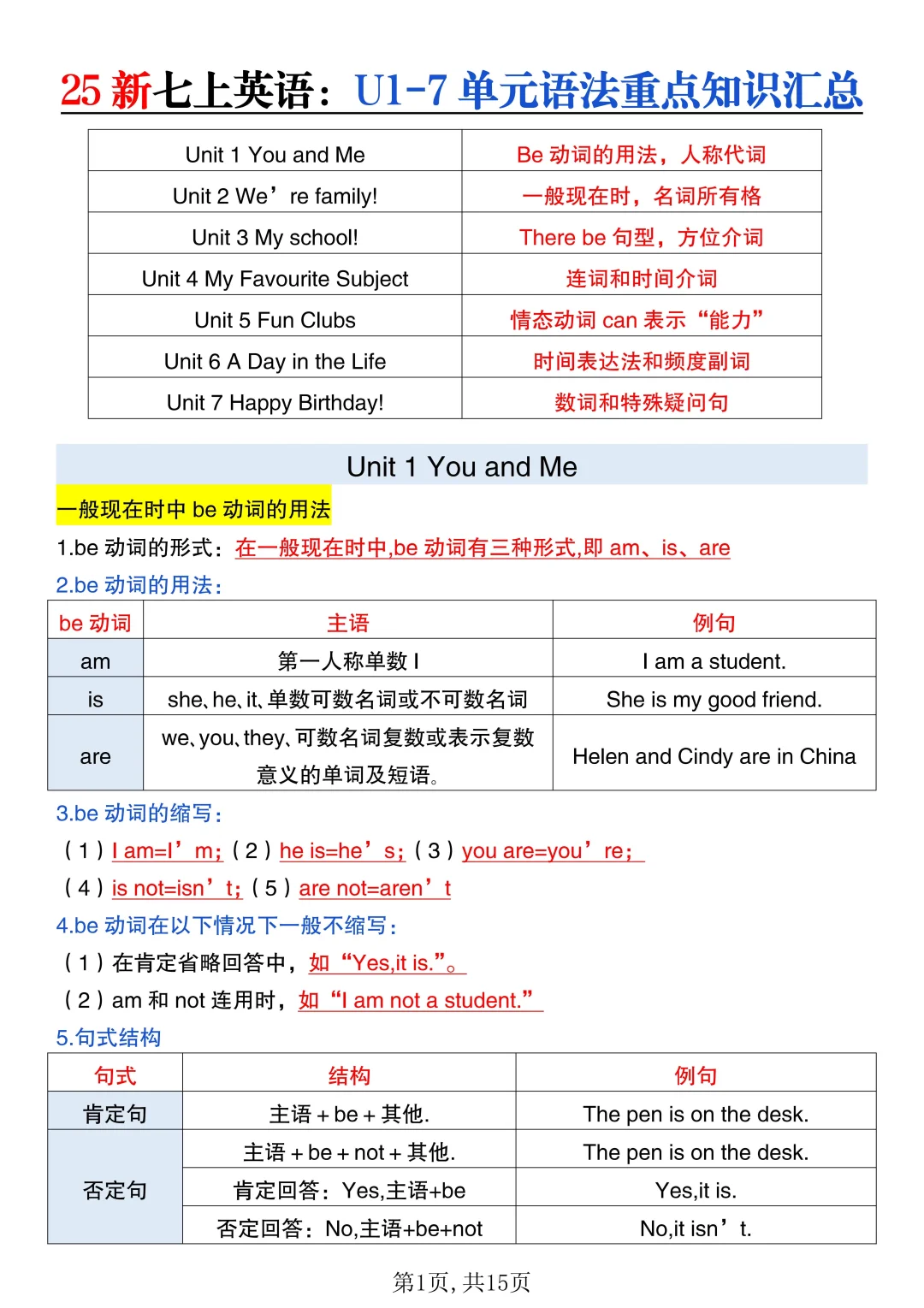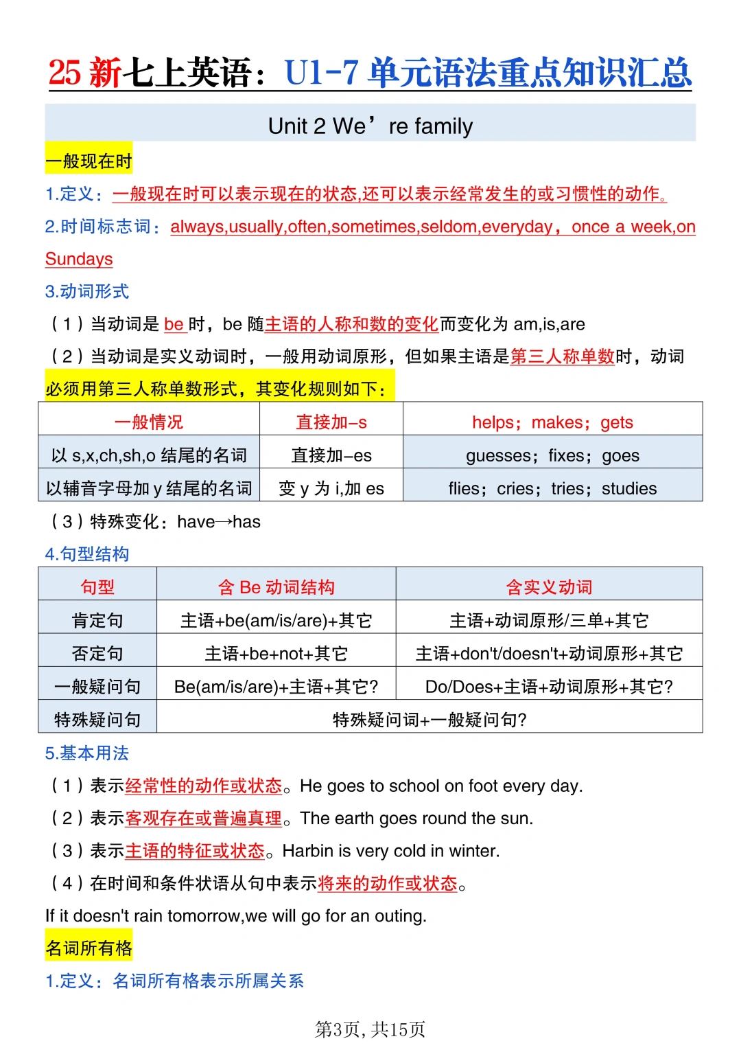 家长收藏孩子受益 知识点总结 七年级 七年级上册 七年级上册英语 初中英语语法 初一英语 必考考点 期中复习 必背知识点