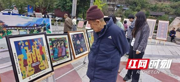 活动现场,土家织锦展览令人驻足,免费的土家摆手舞培训吸引了众多居民参与。晚会节目内容丰富、编排紧凑,既有抒发家国情怀的舞蹈《党旗飘扬的方向》、男声独唱《我们的祖国歌香花甜》,也有贴近生活的歌舞《土家敬酒歌》《夕阳红》《喜谷》;表演唱《回娘家》引得现场掌声不断、笑声连连。最终,摆手舞大团将气氛推向最高潮。
