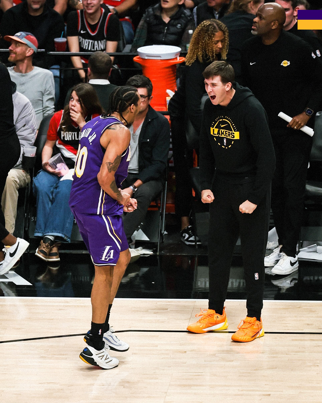 八村塁表示,当尼克-史密斯打出一波进攻高潮时,他曾鼓励对方继续保持势头,而小史密斯的回应是“我肚子疼”。