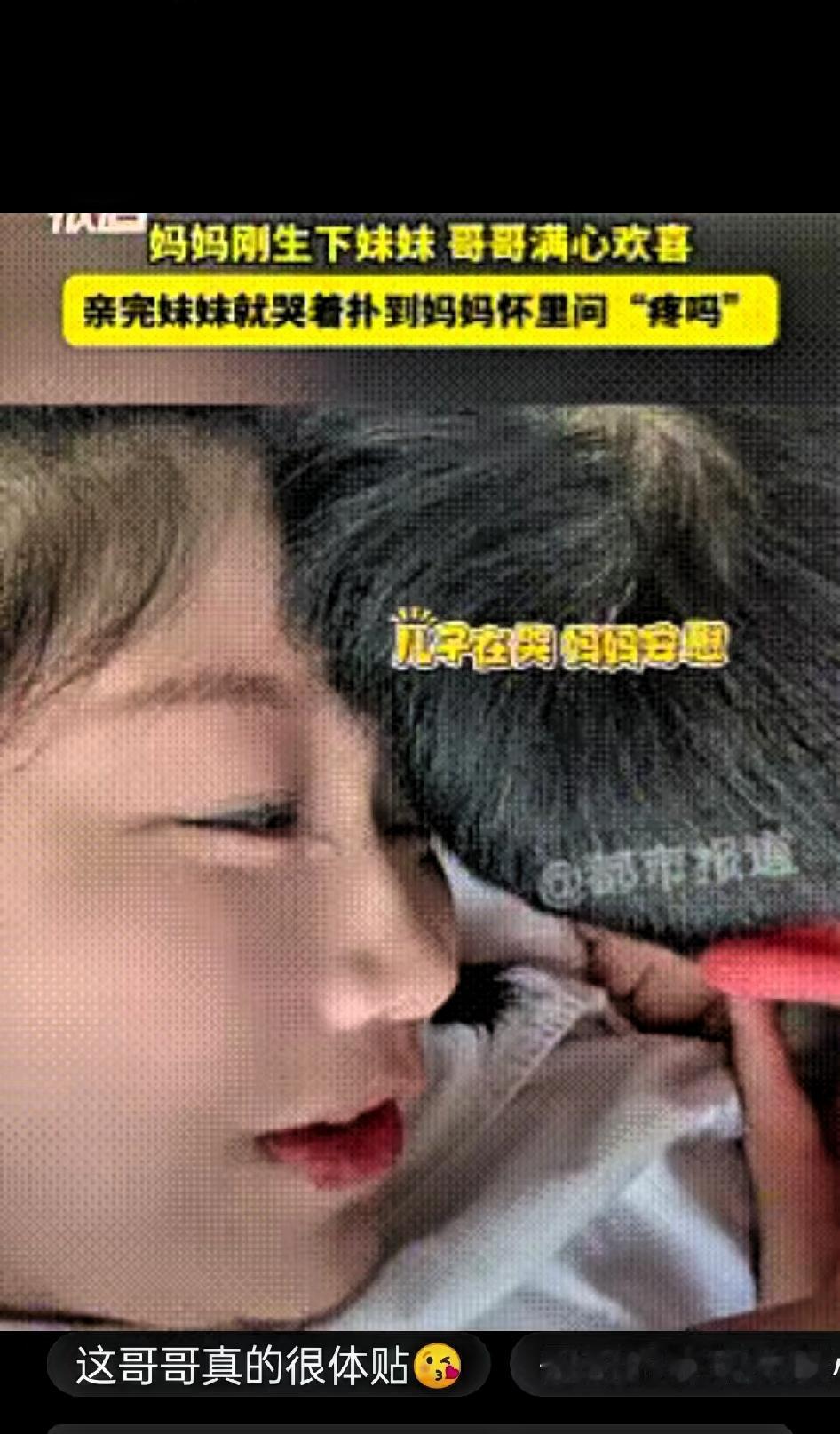 打着灯笼都难找!视频中这位妈妈刚刚生下一个妹妹,还在恢复期,哥哥就急冲冲跑过来,先是凑到婴儿床前,轻轻捧着妹妹的小脸蛋亲了一口,眼睛亮闪闪地宣布:“第一口可是我亲的!”那小模样,像极了在宣告“这是我的小宝贝妹妹”。 可没等大家笑完,他立马转身扑到妈妈床边,小手轻轻摸着妈妈的手,声音软乎乎却带着心疼:“妈妈,你疼吗?”就这五个字,瞬间让妈妈红了眼眶,强忍着感动说“不疼”,结果哥哥自己先掉起了眼泪,小肩膀一抽一抽的,妈妈赶紧把他搂进怀里,一边擦他的眼泪一边哄:“好了好了,妈妈真的不疼。” 网友都在说“这哥哥也太会疼人了”“打着灯笼都难找”,其实我觉得,这哪是哥哥天生懂事,分明是妈妈用爱养出来的!要是平时没让孩子感受到被重视、被疼爱,他怎么会懂得心疼妈妈、爱护妹妹?这份藏在细节里的温柔,比任何“优秀”的标签都珍贵。 现在好多人纠结生不生二胎,怕大宝吃醋、受委屈,可看这家人就知道,只要给足大宝安全感,让他知道“有了妹妹,妈妈对你的爱不会少一分”,他反而会变成妹妹的小守护神、妈妈的小帮手。这种一家人互相牵挂的画面,才是最动人的幸福。 你家有没有这种暖到心窝的小瞬间?是孩子突然帮你捶背,还是主动分享零食给家人?