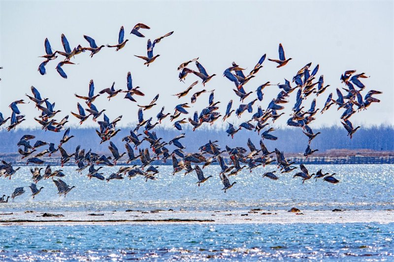 七里海潟湖处于东亚—澳大利西亚候鸟迁徙通道上,每年10月和11月,都会有大批候鸟飞临这里中转停歇,再向南迁徙。