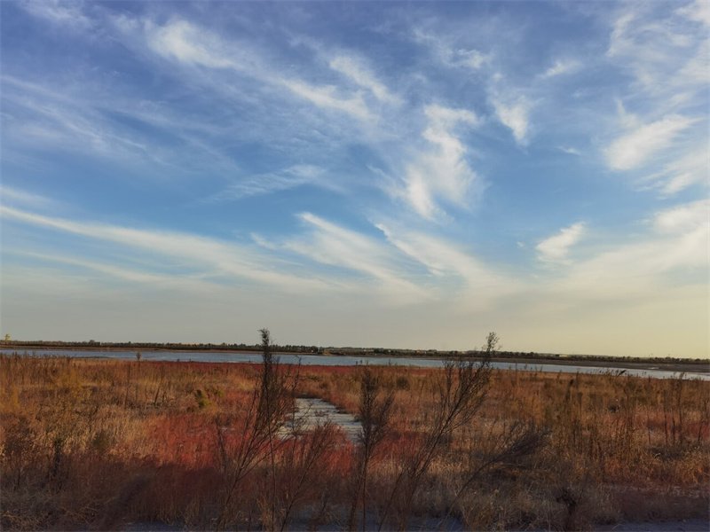 草只是最靠近七里海潟湖的一层植被。自岸向海,修复岸线按照“乔—灌—草”分层种植模式,先后栽植了刺槐、竹柳等乔木28998株,紫穗槐、绚丽海棠等灌木108113株,芦苇等水生植物37.27公顷,喷播碱蓬植草66.39公顷。