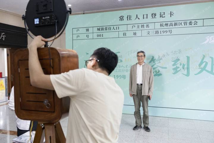 2024年6月,2024滨江国际人才活动江北分会场——“回忆!199号”活动现场,一面墙上设置了一页巨大的“常住人口登记卡”——户主姓名:杭州高新区管委会;住址:文三路199号。趣链科技、游卡网络、品茗科技等企业负责人在这本“户口簿”上签下自己的名字。