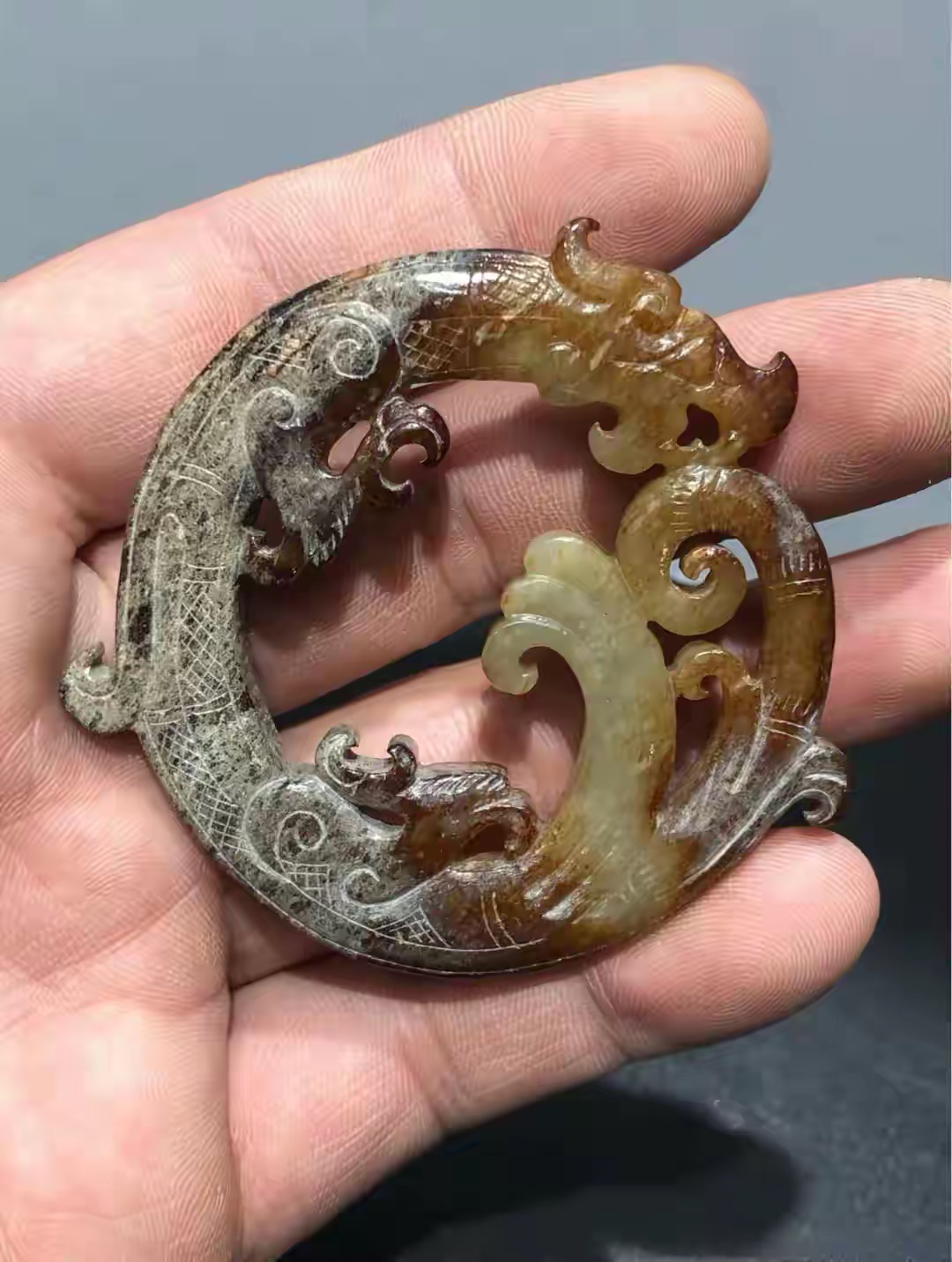 老师傅戴上眼镜,拿出微型手电灯,仔细研究了一会,“这是明代的和田老龙凤玉佩!是一件很不错的圆形玉佩,包浆自然老气,老刀法雕刻,工艺精细,动态逼真形象细节雕刻到位,线条优美,肉质油润,外包浆发白色,是上期风化的原因,这是哪里弄来的?”