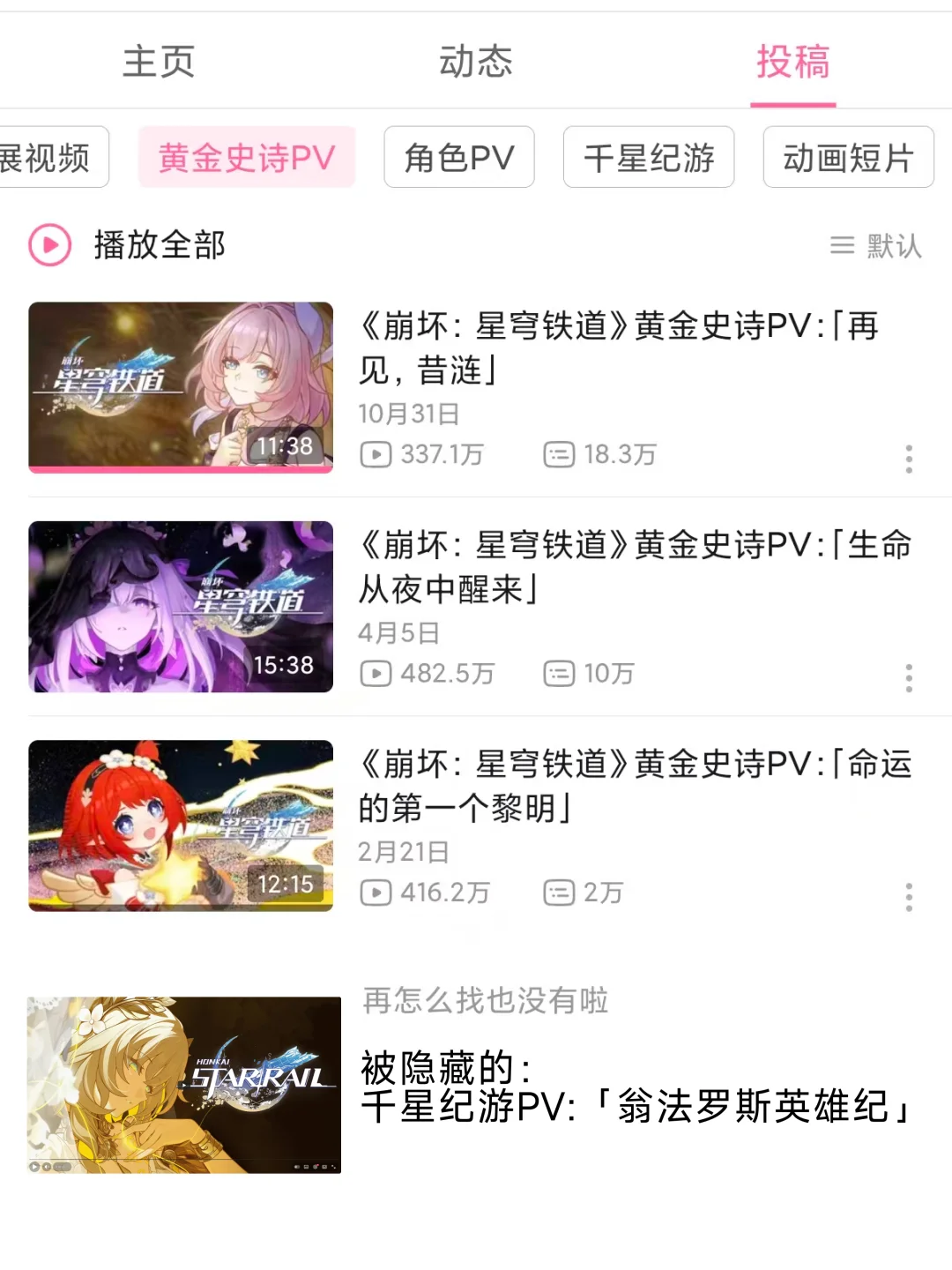 隐藏了黄金史诗pv和版本pv,版本pv目前3.2之后的还存活,黄金史诗pv只隐藏了第一个,不会播完一个删一个吧[笑哭R] 截至目前,角色pv目前只有阿雅的改了,其他的估计也会改[哭惹R]