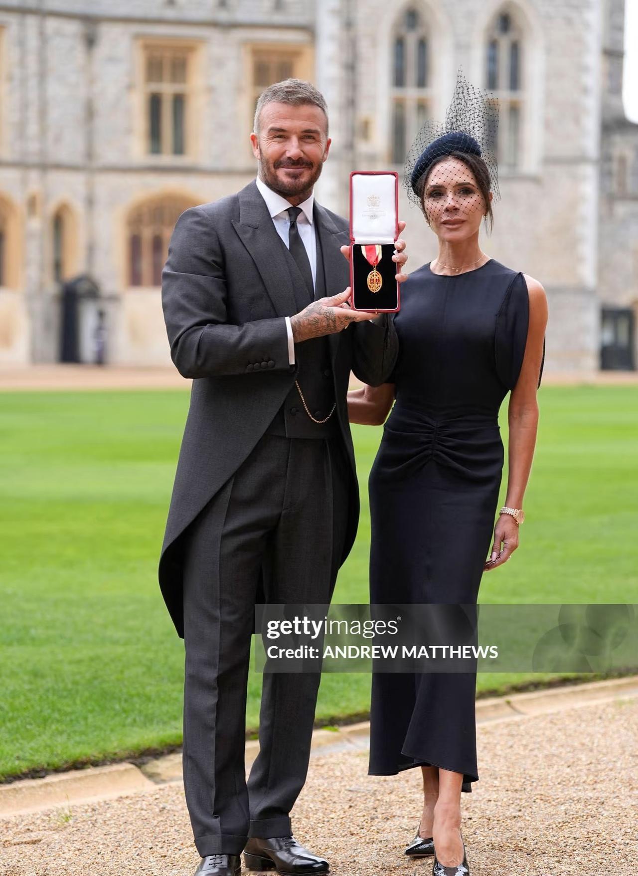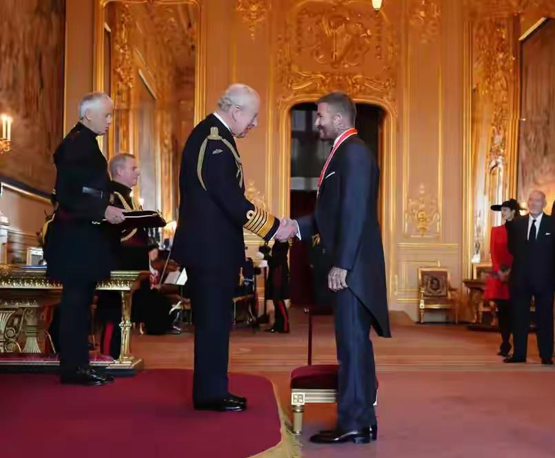 贝克汉姆在温莎城堡正式授勋! 查尔斯国王册封他为爵士,爸爸妈妈,还有三个孩子都来了,他们都穿的统一的黑色,而小贝的西装是由妻子维多利亚设计的,贝嫂这一身也特别贵族范儿。 查尔斯国王用宝剑轻轻碰他肩膀的那一刻,这哥们儿眼里的光藏都藏不住,要知道这枚爵士勋章他盼了足足 14 年啊。 现场一家子穿的统一黑色正装特庄重,他身上那套西装还是维多利亚亲手设计的,袖口偷偷绣了曼联队徽,藏着俩人二十多年的情分。 谁能想到,这个如今的 “贝爵爷”,当年只是伦敦东区一个普通电工的儿子。17 岁拿到父亲送的旧手表时,恐怕也没敢想自己能站在温莎城堡受封。 他在曼联踢了那么多年球,394 场比赛进 85 个球,拿过 6 个英超冠军、1 个欧冠奖杯,那脚 “圆月弯刀” 任意球成了多少人的青春记忆。 可爵士头衔从来不是靠球技就能随便拿的,英国王室看得远着呢,得看你给社会真做了多少事。 他这封爵路走得太坎坷了。2003 年拿了 OBE 勋章时就盯着爵士头衔,2011 年帮着办伦敦奥运后第一次提名,结果 2014 年被税务争议搅黄了,后来又被黑客篡改邮件泼脏水,好几次都差一步。 换别人可能早放弃了,可他没辩解,反倒更拼了。联合国儿童基金会的记录里,他自掏腰包捐了 700 万英镑,在非洲给贫民窟孩子系鞋带,发起的 “7 号基金” 帮了 100 多万困境儿童。 英国外交部都算过,他为英国旅游带来的增量,比得上十二座巨石阵的吸引力,还带动英超海外转播费多赚了二十多亿英镑,这钱够修三条高铁支线了。就这份付出,等 14 年也值! 授勋那天的细节特戳人。离婚多年的爸妈特意凑到一起,手拉手看着他,眼里全是欣慰。 三个孩子也来了,罗密欧举着手机录像,克鲁兹激动得跳起来,小七牵着他的手,鞋带散了他立马蹲下去系,连国王都等着没催。 维多利亚更用心,熬了三个通宵设计西装,领口绣着 “DB” 缩写,把俩人的感情和他的曼联情结都缝进去了。 要知道贝嫂自己 2017 年就拿过 OBE 勋章,现在成了 “Lady Beckham”,两口子都戴过王室勋章,这在娱乐圈太少见了。 最让人佩服的还是他俩的自律,真不是装出来的。贝克汉姆都 50 岁了,体脂率比年轻时还低,肌肉线条清清楚楚。 他自己说没秘诀,就是每天六点起床跑步,下午练力量,再忙也不去健身房,还自己做饭控制饮食。 维多利亚更狠,生了 4 个孩子体重常年 43 公斤,每天跑 4.8 公里再练 1 小时,去年脚骨折了还拄着滑板车去健身,卷不了腿就练上身,胳膊线条比小伙子还清晰。 他俩结婚 25 周年穿当年的旧衣服,居然还合身,这可不是靠饿出来的,是二十多年雷打不动的坚持。 有人说他命好,可哪有平白无故的好运。曼联官网把他列进 “爵士天团”,和弗格森这些传奇并列,全靠他自己熬出来的。 当年在曼联青训营时教练就说他速度一般,全靠练才把右脚弧线练得出神入化。就算成了巨星,他也没飘,退役后搞投资、办足球俱乐部,身家到了 5 亿英镑,可还是会自己种菜养鸡,勋章挂在胸前还蹲在地里拔萝卜。 现在终于能叫他 “贝爵爷” 了,维多利亚也成了 “Lady”,这头衔是对他足球生涯的肯定,是对他慈善付出的认可,更是对他们夫妻俩二十多年自律和相守的奖赏。 从伦敦东区的穷小子到温莎城堡的爵士,从 “文体恋” 不被看好到互相成就的模范夫妻,不管起点多普通,只要认准目标坚持下去,再加上家人的支持,总有一天能活成自己想要的样子。 这种踏实和自律,比任何光环都珍贵,也难怪这么多人打心底里为他高兴。