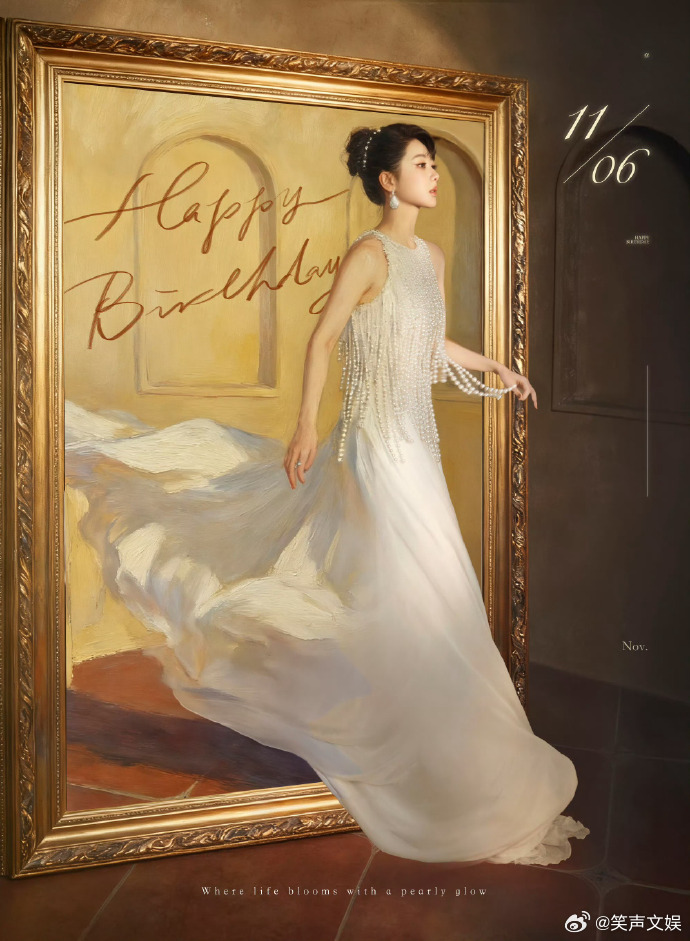 家业给杨紫庆生杨紫家业生贺海报杨紫珍珠高定 家业暖心庆生!海报中杨紫穿珍珠高定超优雅,灵动气质藏不住,粉丝超感动~