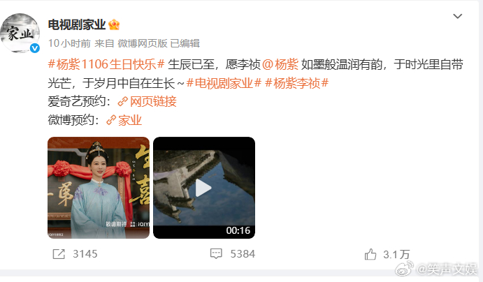 家业给杨紫庆生杨紫家业生贺海报杨紫珍珠高定 家业暖心庆生!海报中杨紫穿珍珠高定超